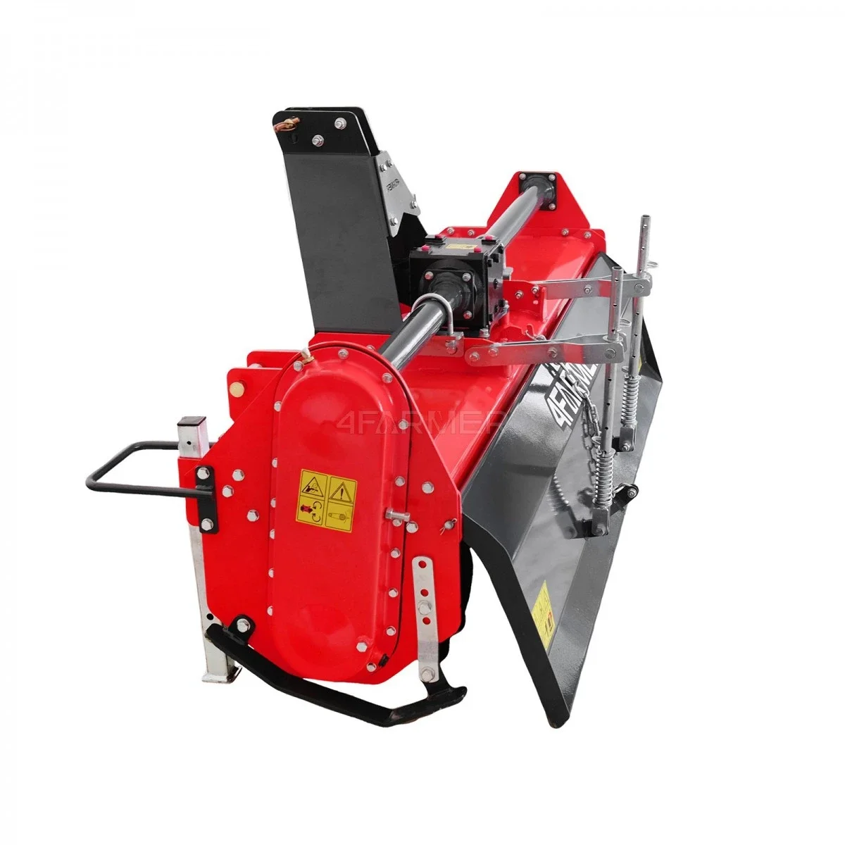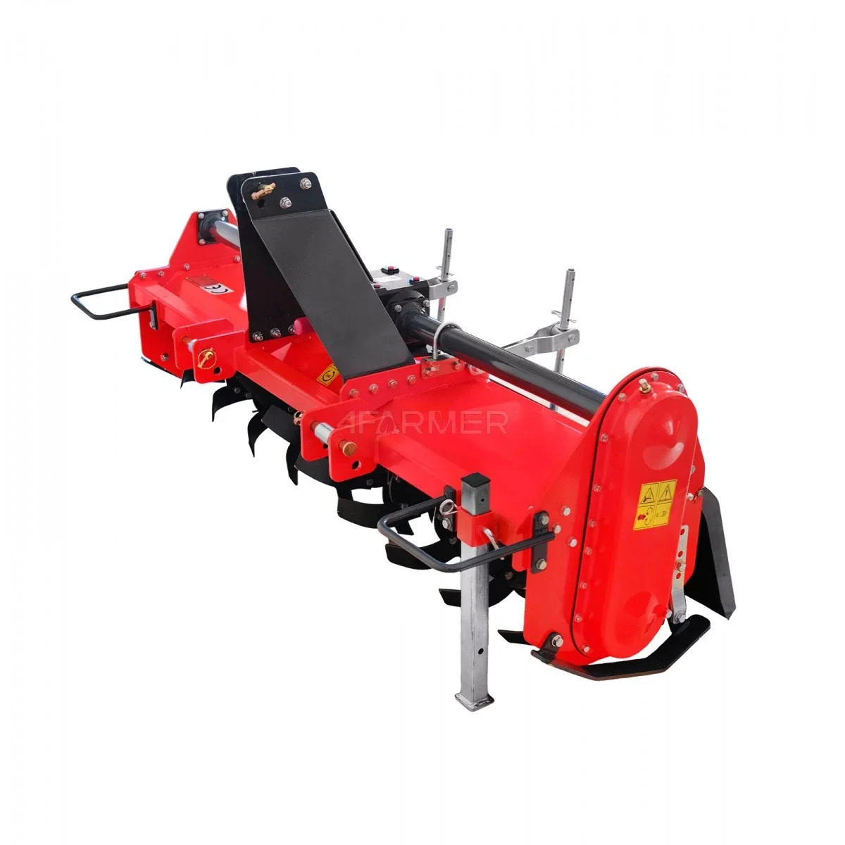 Grâce aux lames rotatives, les fragments de terre sont coupés et broyés. Le motoculteur est équipé de couteaux massifs incurvés sur les côtés qui mélangent soigneusement le sol. Ils sont montés sur l'arbre de travail, 4 pièces sur chaque section, soit 36 pièces au total. La largeur de notre travail est de 170 cm et la profondeur à laquelle nous pouvons travailler est de 8 à 14 cm. Pour que le motoculteur fonctionne correctement et accomplisse sa tâche, il doit être utilisé avec un tracteur d'une puissance recommandée d'au moins 40 CV. Grâce à cela, nous obtiendrons un sol bien préparé pour les travaux ultérieurs.