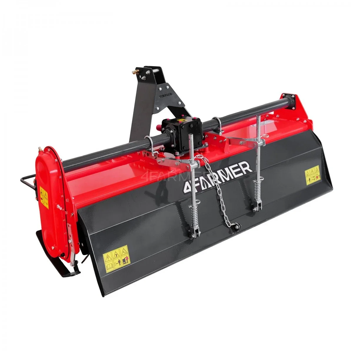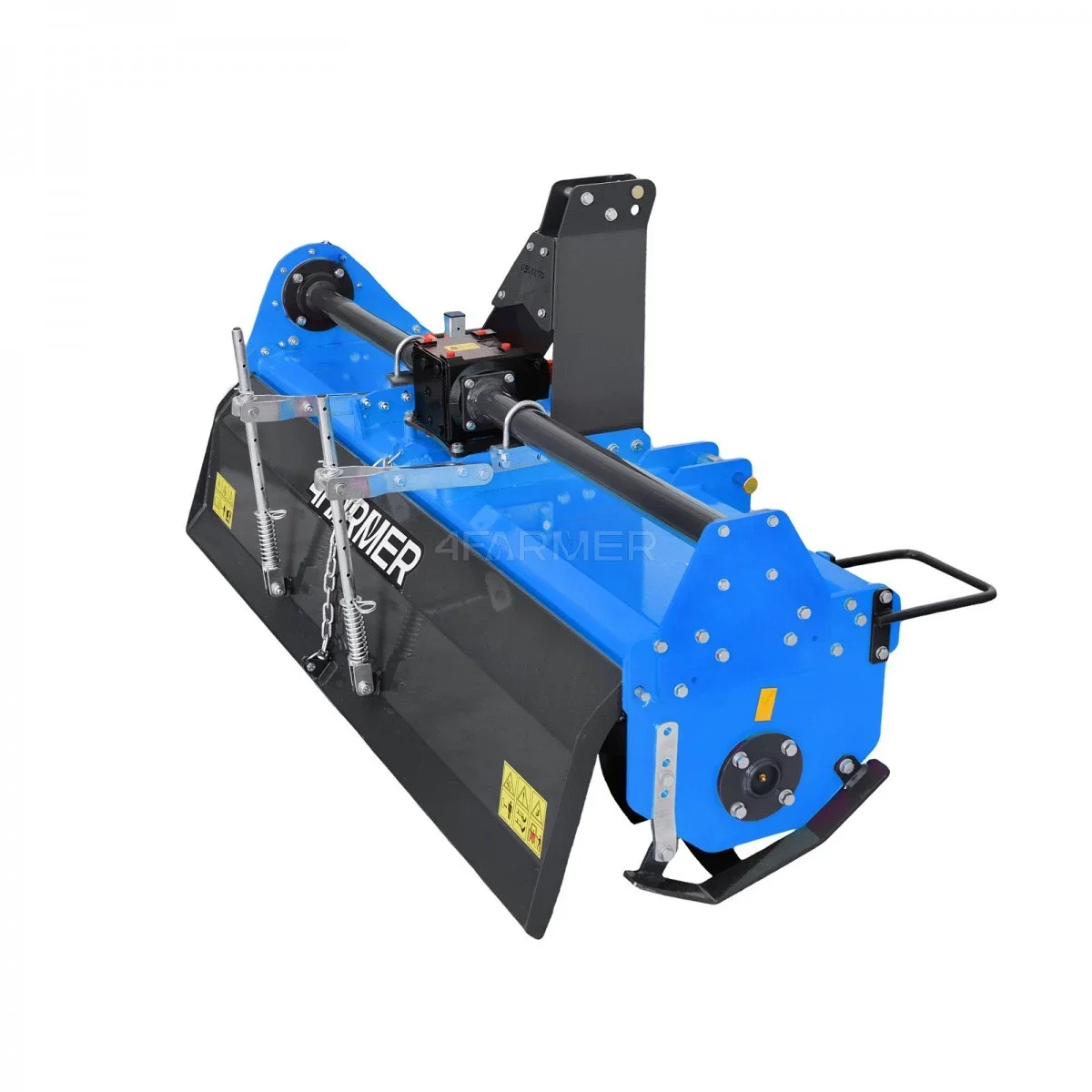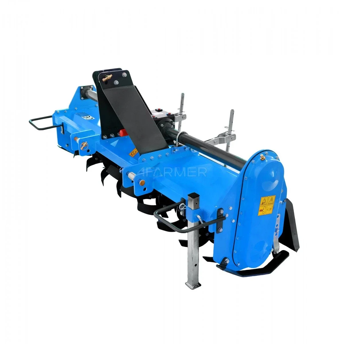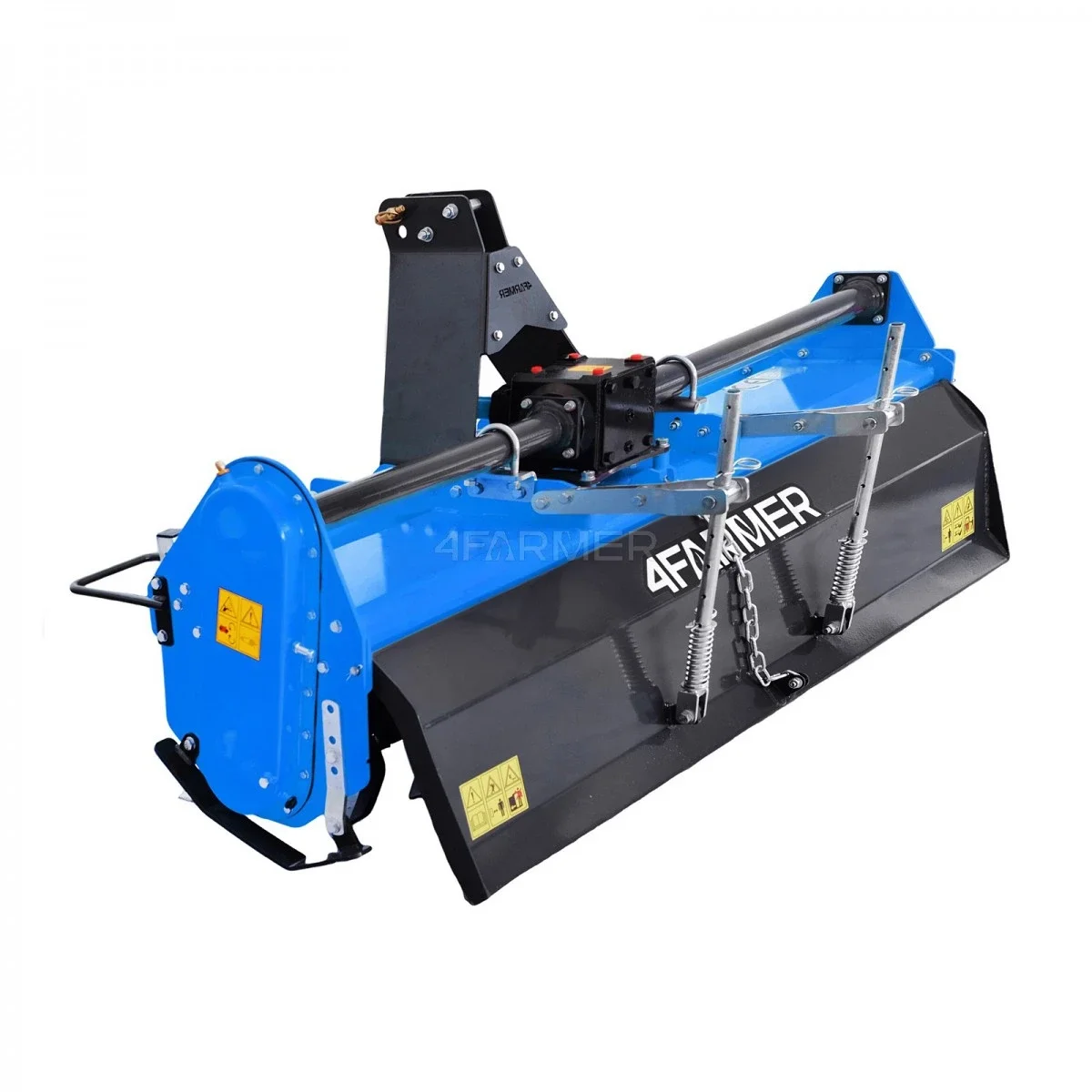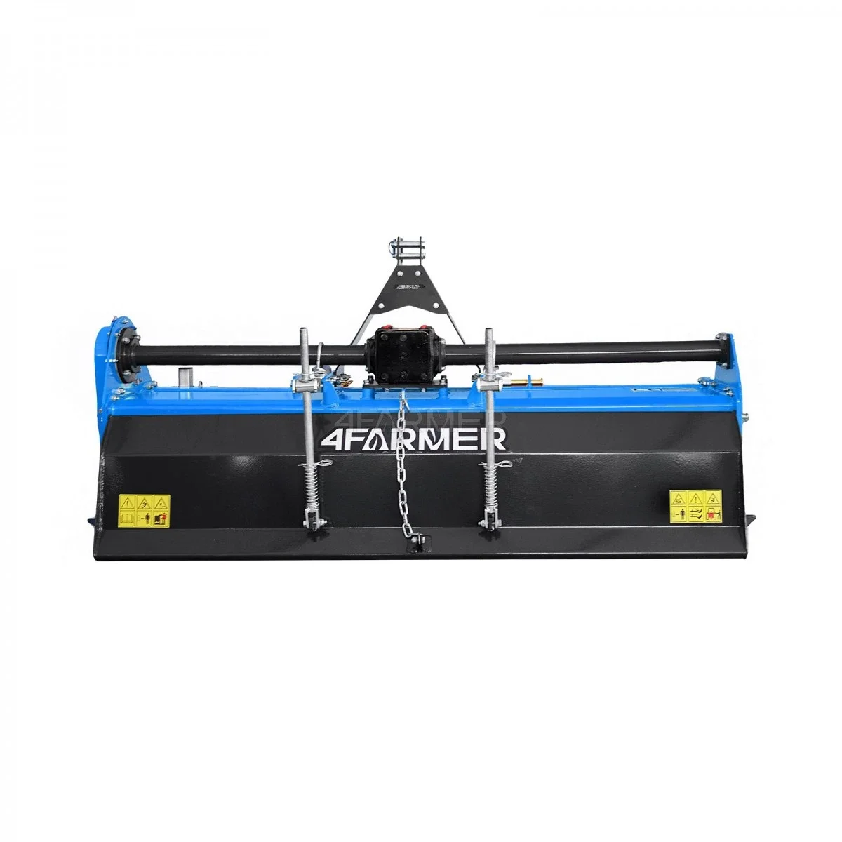 Grâce aux lames rotatives, les fragments de terre sont coupés et broyés. Le motoculteur est équipé de couteaux massifs incurvés sur les côtés qui mélangent soigneusement le sol. Ils sont montés sur l'arbre de travail, 4 pièces sur chaque section, soit 40 pièces au total. La largeur de notre travail est de 180 cm et la profondeur à laquelle nous pouvons travailler est de 8 à 14 cm. Pour que le motoculteur fonctionne correctement et accomplisse sa tâche, il doit être utilisé avec un tracteur d'une puissance recommandée d'au moins 45 CV. Grâce à cela, nous obtiendrons un sol bien préparé pour les travaux ultérieurs.