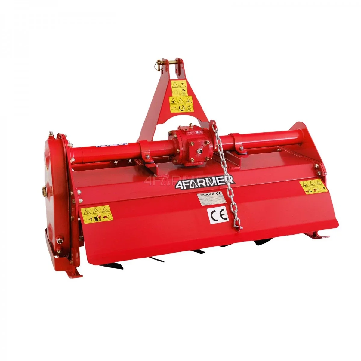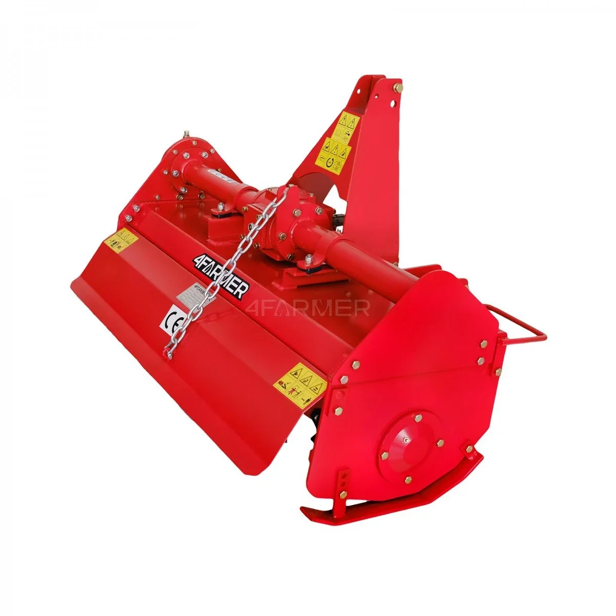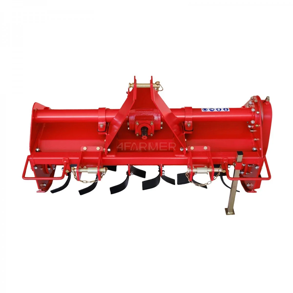 Grâce aux lames rotatives, les fragments de terre sont coupés et broyés. Le motoculteur est équipé de couteaux massifs incurvés sur les côtés qui mélangent soigneusement le sol. Ils sont montés sur l'arbre de travail, 4 pièces sur chaque section, soit 24 pièces au total. La largeur de notre travail est de 120 cm et la profondeur à laquelle nous pouvons travailler est de 8 à 14 cm. Pour que le motoculteur fonctionne correctement et accomplisse sa tâche, il doit être utilisé avec un tracteur d'une puissance recommandée d'au moins 25 CV. Grâce à cela, nous obtiendrons un sol correctement préparé pour les travaux ultérieurs.